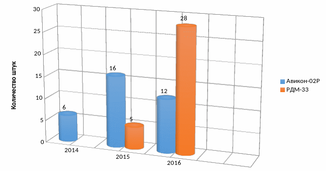 На рисунке 2.7 показано, что основное количество выявленных остродефектных рельсов приходится на дефектоскоп РДМ-33, но надо учитывать, что дефектоскоп нового поколения Авикон-02Р был введен в эксплуатацию в декабре 2015 года.