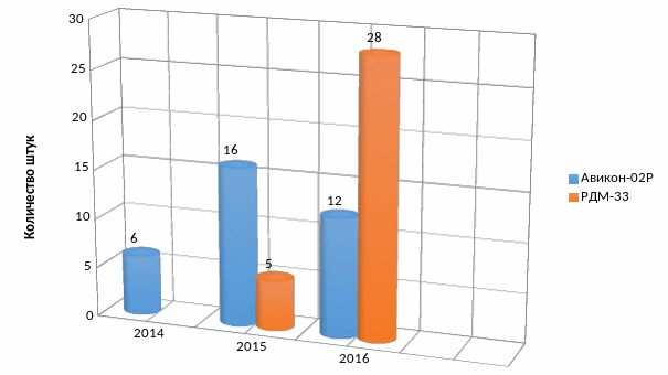 На рисунке 2.7 показано, что основное количество выявленных остродефектных рельсов приходится на дефектоскоп РДМ-33, но надо учитывать, что дефектоскоп нового поколения Авикон-02Р был введен в эксплуатацию в декабре 2015 года.