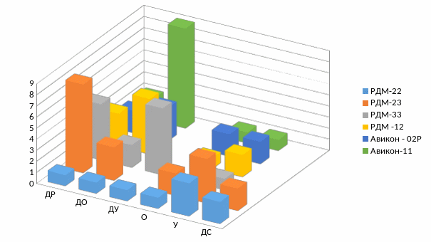 | Код дефекта | РДМ-22 | РДМ -23 | РДМ-33 | РДМ-12 | Авикон-02Р | Авикон-11 |