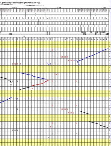 График работы составляется на основе расчёта периодичности для главных путей, приёмо-отправочных путей, стрелочных переводов лежащих на главных и приёмоотправочных путях, сварных стыков.