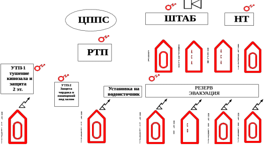 2.При выходе из строя водопроводной сети, пожарные автомобили установить на брызгальный бассейн и на пожарный водоём.
