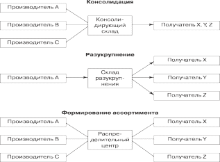 Разукрупнение предполагает доставку товаров от одного производителя нескольким заказчикам в соответствии с их заказами. Этот вариант в книжном деле характерен для складов издателей. Они обеспечивают возможность получателю закупить продукцию в нужном ему объеме.