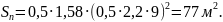 2. Определяем площадь пожара на момент прибытия первого подразделения по формуле (9.2):