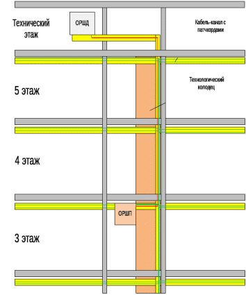 Рисунок 3.6.2. Расположение ОРШД на техническом этаже.