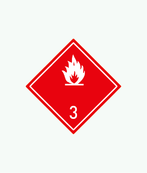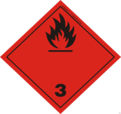 Класс 3 – легковоспламеняющиеся жидкости – символ (пламя): черный или белый; фон: красный; цифра «3» в нижнем углу [ 17 ].