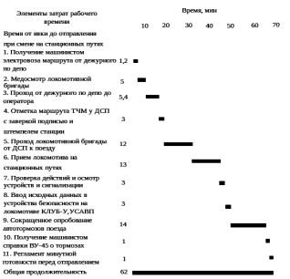 Рисунок 4.2.3.1. Технологический график определения нормы времени на станции оборотного локомотивного депо станции Ружино