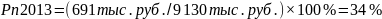 Как показывают вышеприведенные расчеты, рентабельность продаж снизилась за анализируемый период с 34% до 31%.