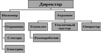 Управление производственной деятельностью тепличного комплекса будет осуществляться индивидуальным предпринимателем, который должен отличается ярко выраженными качествами опытного руководителя, лидера коллектива, трудолюбивого менеджера. План по персоналу составлен, исходя из реальных потребностей в кадрах для функционирования тепличного хозяйства. При производственно-коммерческой необходимости, связанной с увеличением объемов производства и/или диверсификацией тепличного комплекса за счет углубления переработки производимой продукции и расширения ассортиментной программы, а также в случае дальнейшей механизации и автоматизации производственного процесса количество постоянных работников может быть увеличено и/или изменена организационная структура предприятия.