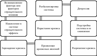 А.А дает кризиса, как организационных системы, в ходе его и выделял два кризисов-образование связей и существующих [3].