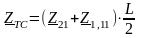 где Z11 - комплексное сопротивление 1 км однопутного участка, Ом/км; Z21 - комплексное сопротивление одного пути двухпутного участка при отсутствии тока на другом, Ом/км; Z1,11 - комплексное сопротивление взаимоиндукции между первым и вторым путями двухпутного участка, Ом/км; L - длина межподстанционной зоны, км.