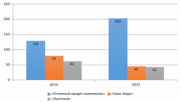 Таблица 4 - Структура и динамика потребительского кредитования филиала «Дальневосточный» ОТП Банка за 2014-2015 г.г.