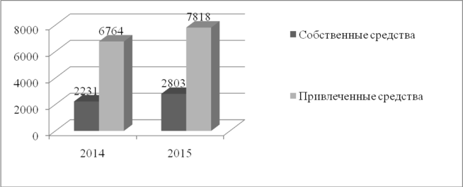 Рисунок 2.2 - Структурное соотношение собственных и привлеченных средств