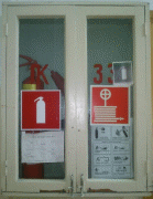 В каждом крыле корпуса имеются планы эвакуации (рисунок 2.2), с обозначенными местами хранения первичных средств пожаротушения и приложенные инструкции о мерах пожарной безопасности для персонала и учащихся. Также здание оснащено всеми необходимыми средствами противопожарной безопасности.