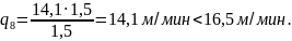следовательно, V8= 100 м/мин, q8= 1,0 м/мин.