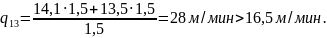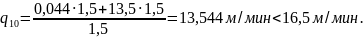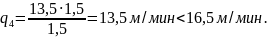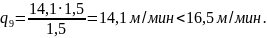 следовательноV2= 15 м/мин, q2= 13,5 м/мин.