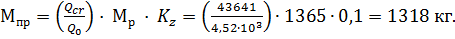 Мпр – приведенная масса паров ЛВЖ, кг: