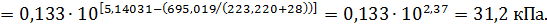 Рн – давление насыщенных паров, кПа [24].
