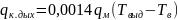 Тепловой поток вычислим в соответствии с формулой теплового баланса при условии, что эффективная мощность механической работы