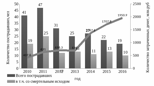 - Центральной дирекции пути и сооружений (ЦП) в 2010 году по сравнению с 2008 годом с 14 пострадавших до 18 пострадавших (рост на 22 %), в 2014 году по сравнению с 2013 годом с 8 пострадавших до 11 пострадавших (рост на 27 %)