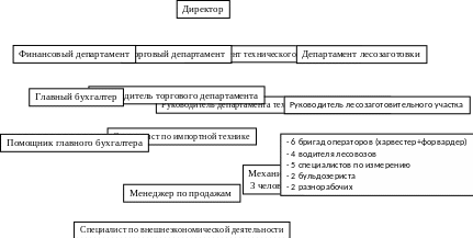 Департамент лесозаготовки отвечает за выполнение планов по заготовке леса. Также этот департамент следит за правильной разработкой делян, контролирует объемы заготовки и вывозки. Основная цель – максимально эффективно использовать технику для достижения поставленного плана. Организационная структура представлена на рисунке 3.