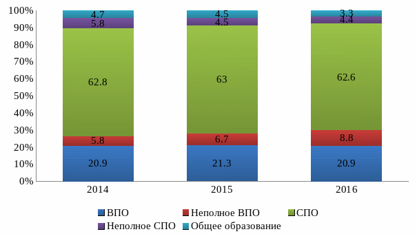 | Уровень образования | 2014 | 2015 | 2016 | |||