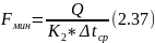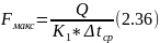 Минимальная и максимальная поверхность теплообмена равна (м2):