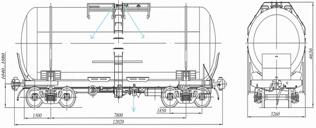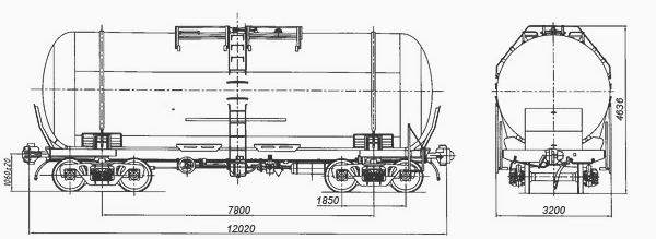 Рисунок 1.1 4-осная цистерна для бензина и других светлых нефтепродуктов, модели 15-1547-03