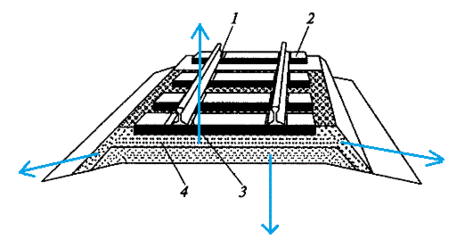 равномерно распределять воспринимаемое от рельсовых опор давление на большую поверхность земляного полотна, амортизируя при этом ударные и вибрационные воздействия проходящего подвижного состава;