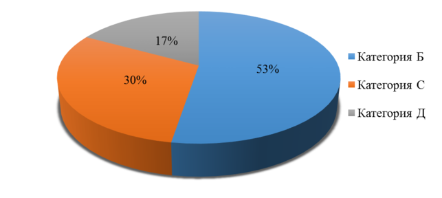 Рисунок 3.1 – Распределение покупателей ООО «Магистраль» по категориям срочности платежей, %