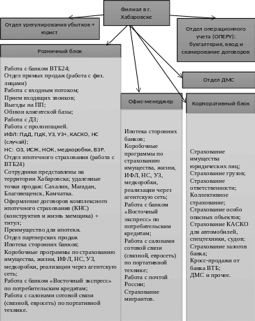 Рассмотрим, какие отделения входят в состав филиала ООО СК «ВТБ Страхование» в г. Хабаровске (рисунок 4).