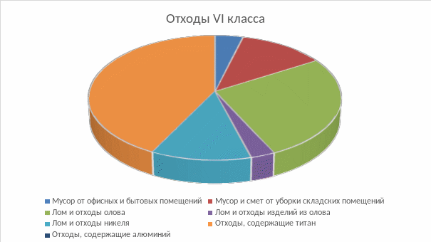 Годовой норматив образования отходов (тонн в год) указан на Рисунке 4.3, из этих показателей следует что самое большое количество отходов VI и V класса т.е малоопасные и практически неопасные отходы.