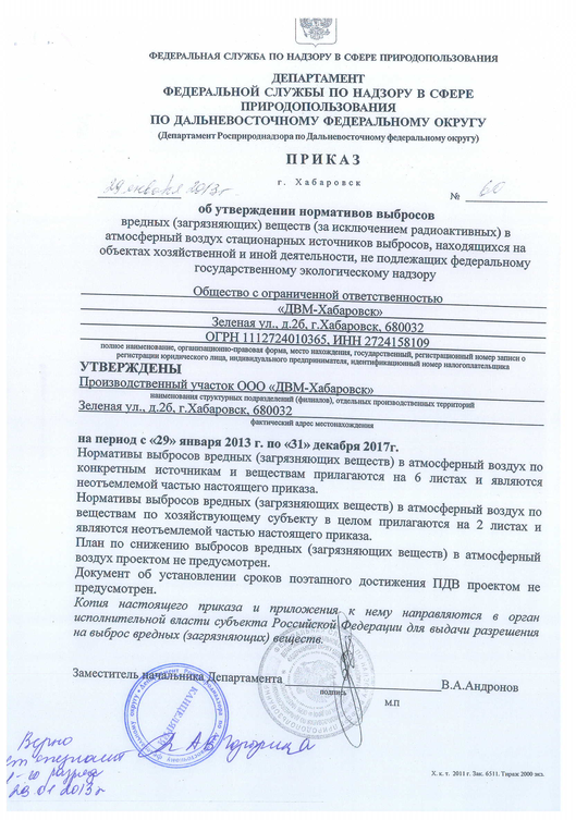 Целью данного дипломной работы являлось внедрение в производственный цикл на крупном промышленном предприятии ООО «ДВМ Хабаровск» природоохранных мероприятий по снижению поступления в атмосферу загрязняющих ингредиентов с выбросами производственного комплекса