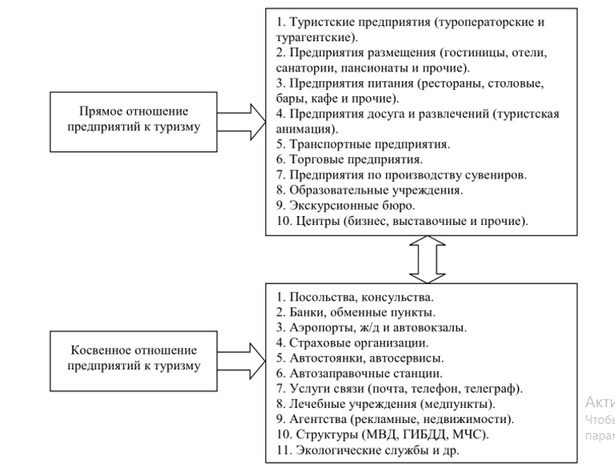 Предприятия, взаимодействующие прямо и косвенно с туризмом