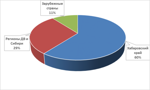 В диаграмме видно, что 60% направлений осуществляется в Хабаровском крае, 29% - в регионах Дальнего Востока и Сибири и 11% - зарубежные направления. Наличие данных клубов активного отдыха показывает нам, что путешественники не всегда прибегают к услугам турфирм, а используют свои ресурсы для формирования поездок. Данные организации можно рассматривать как с точки зрения выездного туризма из Хабаровского края в другие регионы, так и въездного в Хабаровский край из других регионов. И можно подтвердить слова авторов, что на самом деле самодеятельный туризм охватывает очень большой процент от внутреннего туризма и было бы некорректно исключать данную категорию туристов из статистики.