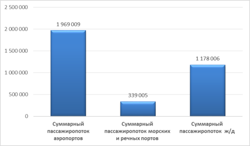 Рис 2.3 Пассажиропоток в Хабаровском крае по данным транспортной статистики 2016 (тыс. чел.)