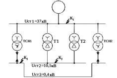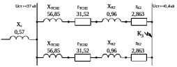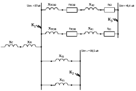 Расчетная схема представляет собой упрощенную электрическую схему с указанием таких элементов электрической цепи и их параметров, которые влияют на токи короткого замыкания [2].