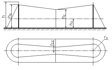 Рассмотрим зоны защиты двух равновеликих стержневых молниеотводов (рисунок В).