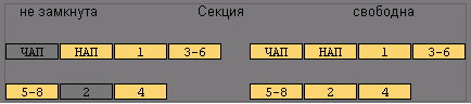 Секции не замкнуты и свободны - индикация желтого цвета;