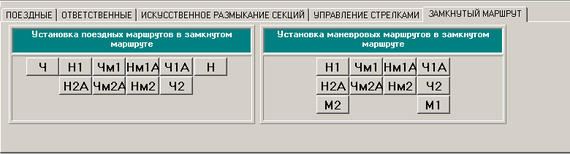 Установка поездных/ маневровых маршрутов в замкнутом маршруте.