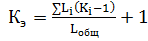 где ∑ Li - суммарная развернутая длина участка с индивидуальными эксплуатационными условиями, км (количество стрелочных переводов, шт.); Кi - величина поправочного коэффициента для участка с индивидуальными эксплуатационными условиями; Lобщ - общая развернутая длина участка (общее количество стрелочных переводов).