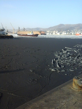 В целом угольные терминалы не позволяют создать нормальные условия для проживания людей на расстоянии до нескольких километров от порта, наглядным подтверждением чего служат многочисленные фотографии домов и улиц, засыпанных угольной пылью, пылевых облаков, черного льда (рисунок 1.1) и покрытой углем прибрежной полосы.
