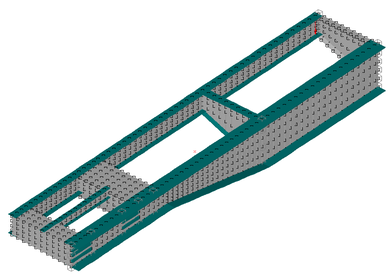 Шкворневая балка представлена двумя балками по осиY, связанно это с тем, что данная балка имеет переменное сечение и описана с помощью пластин.