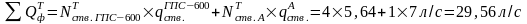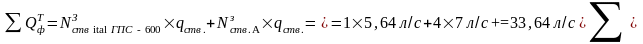 При условии: тушение производится стволами ГПС-600 (Qств. ПО = 0,36 л/с; Qств. воды = 5,64л/с)