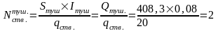 Определяем количество стволов необходимых для тушения горящего резервуара:
