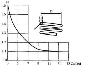 Рисунок. 9.5.2. Зависимость коэффициента N от индекса пружины C=D/d