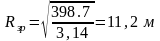 Радиус разлива определяется по формуле, м: