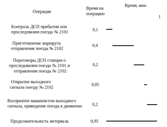 При достаточной длине приемоотправочных путей, для раздельного пункта поперечного типа, на однопутной линии, рисунок 3.8, продолжительность интервала скрещения