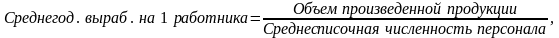Среднегодовая выработка на одного работника – величина, равная отношению объема произведенной продукции и среднесписочной численности персонала (1):