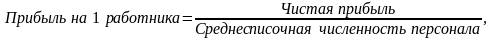 Прибыль на одного работника –величина, равная отношению чистой прибыли к среднесписочной численности персонала(2):