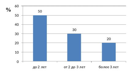 Как видно из рисунка 12 около 50 % персонала имеют стаж работы в компании не более двух лет.